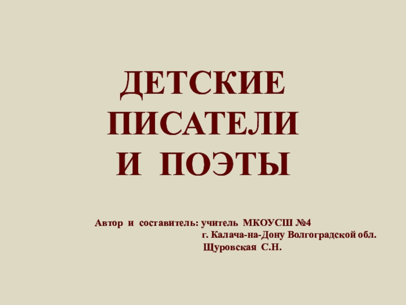 Слайд 1ДЕТСКИЕ ПИСАТЕЛИ