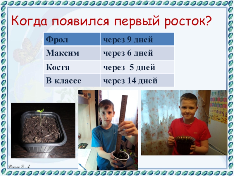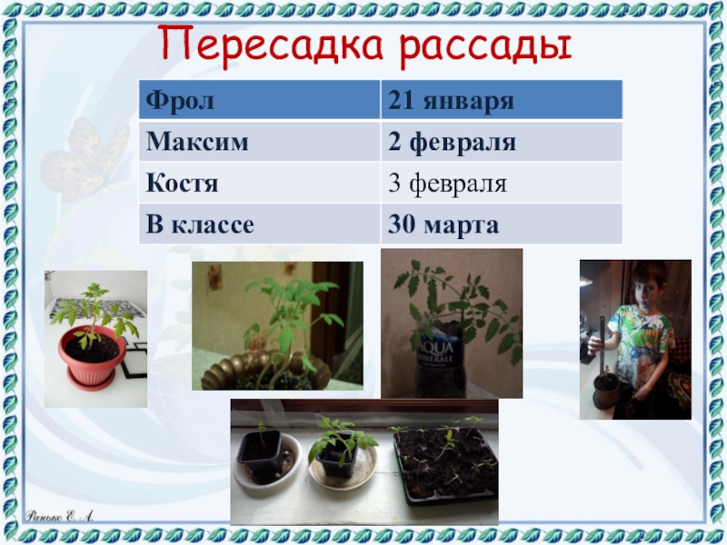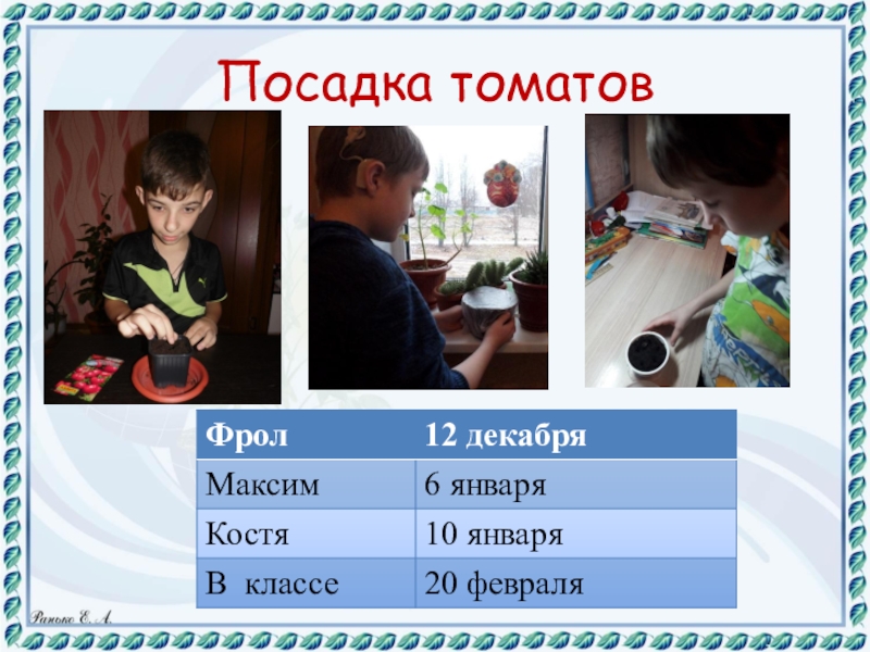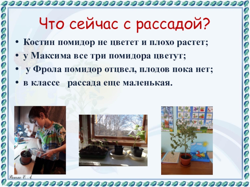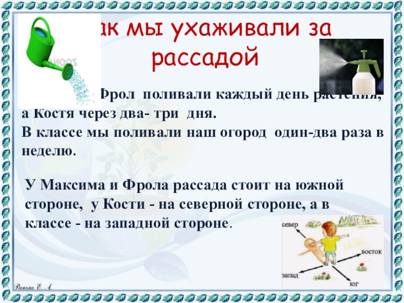У Максима и Фрола рассада стоит на южной стороне, у Кости - на северной стороне, а в классе - на западной стороне.