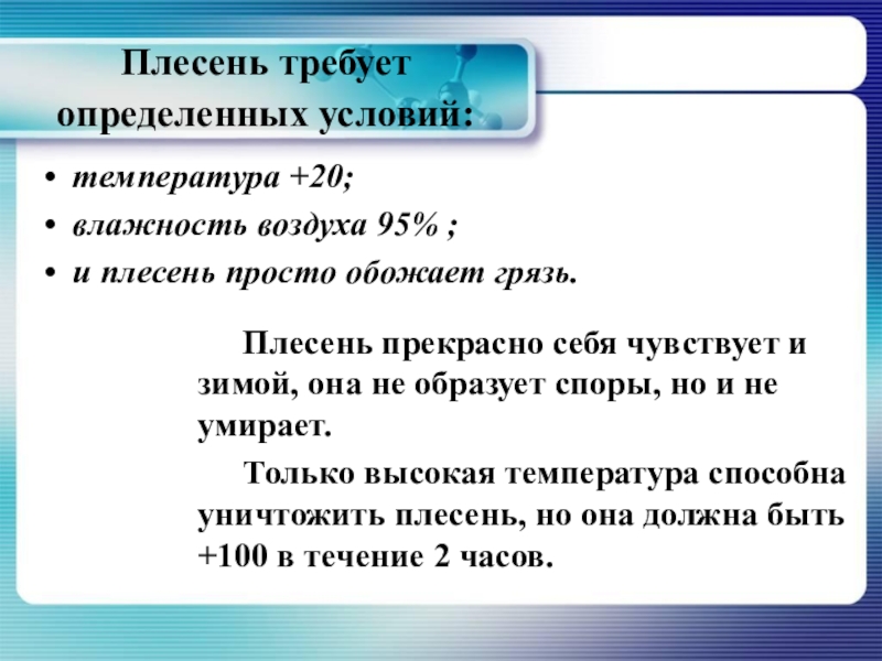 Плесень прекрасно себя чувствует и зимой, она не образует споры, но и не умирает.
