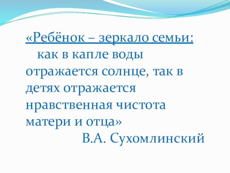 Слайд 10«Ребёнок – зеркало семьи: как в капле воды отражается солнце,