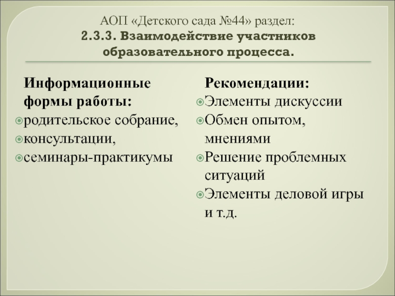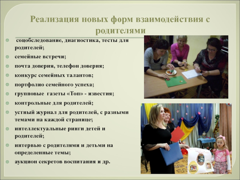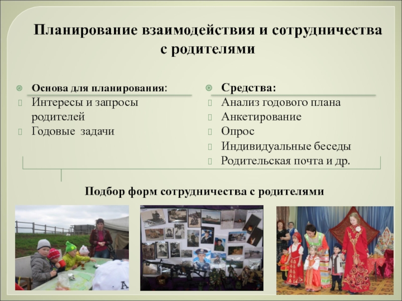 Подбор форм сотрудничества с родителями