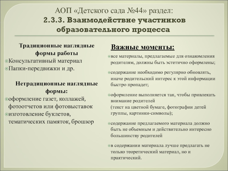 содержание необходимо регулярно обновлять, иначе родительский интерес к этой информации быстро пропадет;
