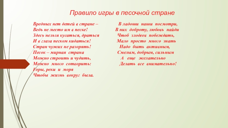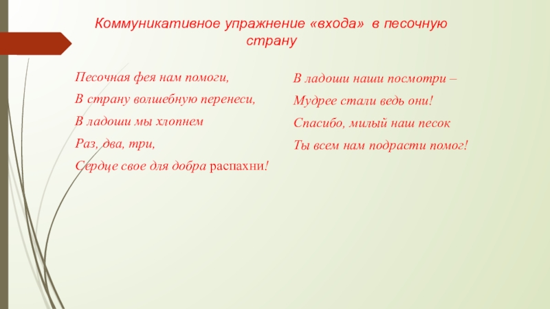 Коммуникативное упражнение «входа» и «выхода» в «Песочную страну». Правила игры с песком.