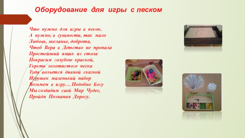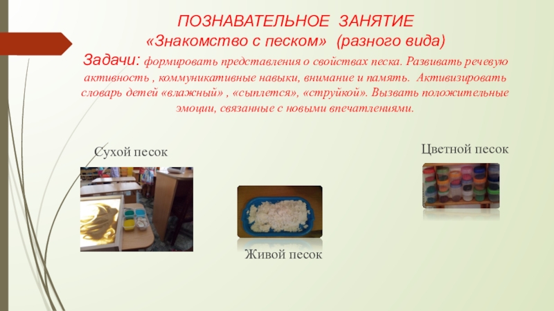 Подбор материалов и оборудования для занятий. Приобретение песка: сухой, цветной, живой.
