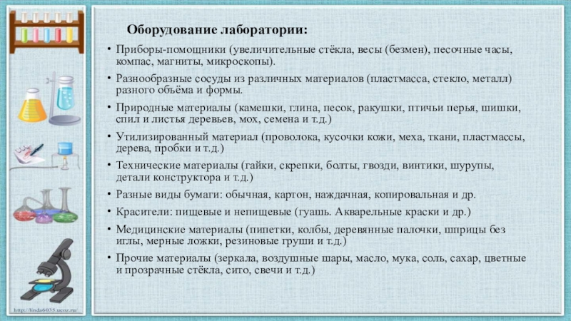 Приборы-помощники (увеличительные стёкла, весы (безмен), песочные часы, компас, магниты, микроскопы).