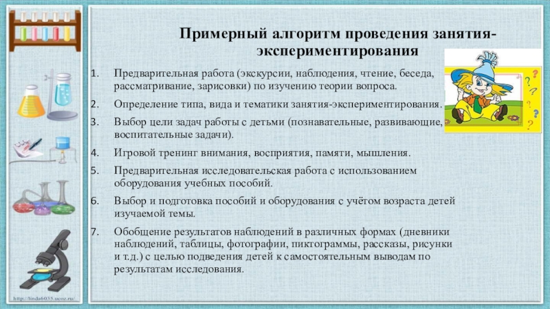 Слайд 10Примерный алгоритм проведения занятия-экспериментирования