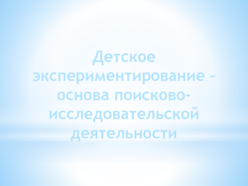 Детское экспериментирование – основа поисково-исследовательской деятельности Детские презентации