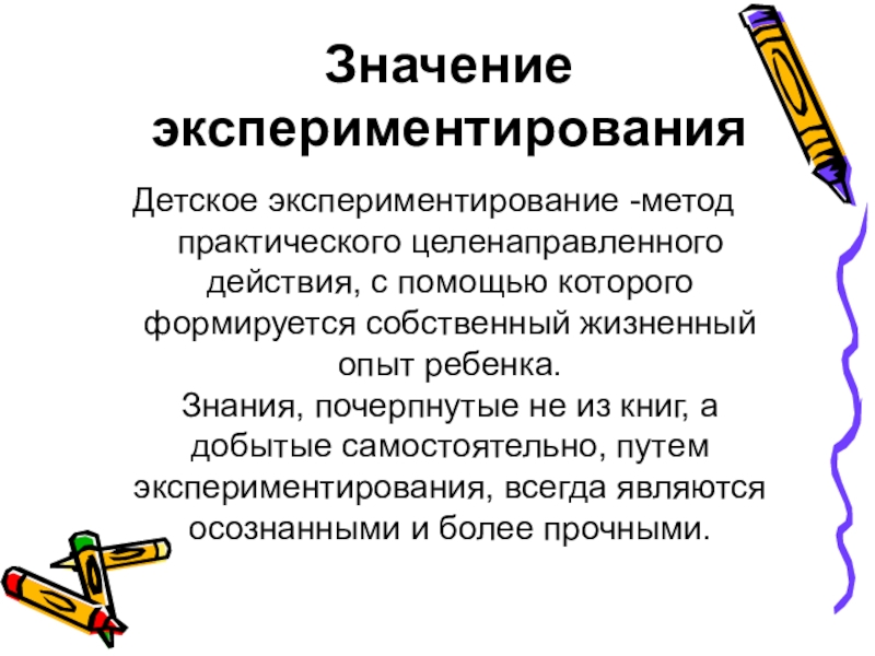 Детское экспериментирование -метод практического целенаправленного действия, с помощью которого формируется