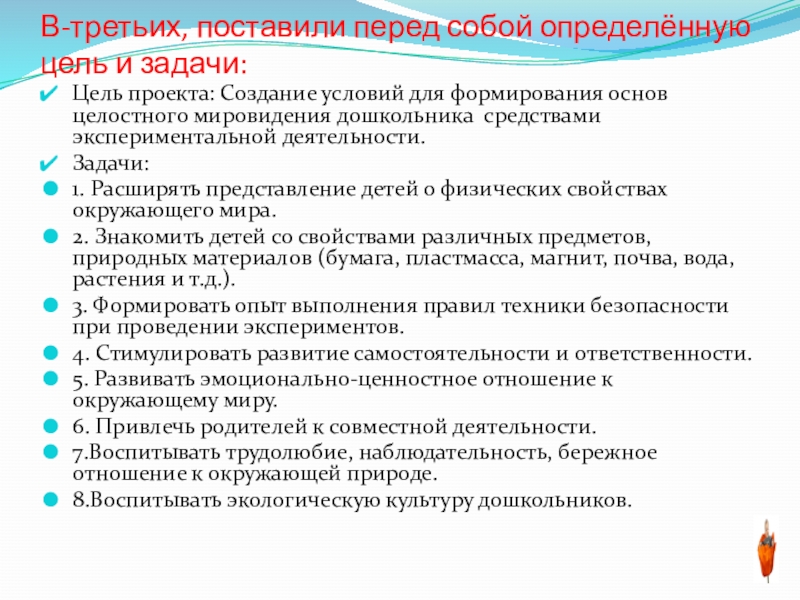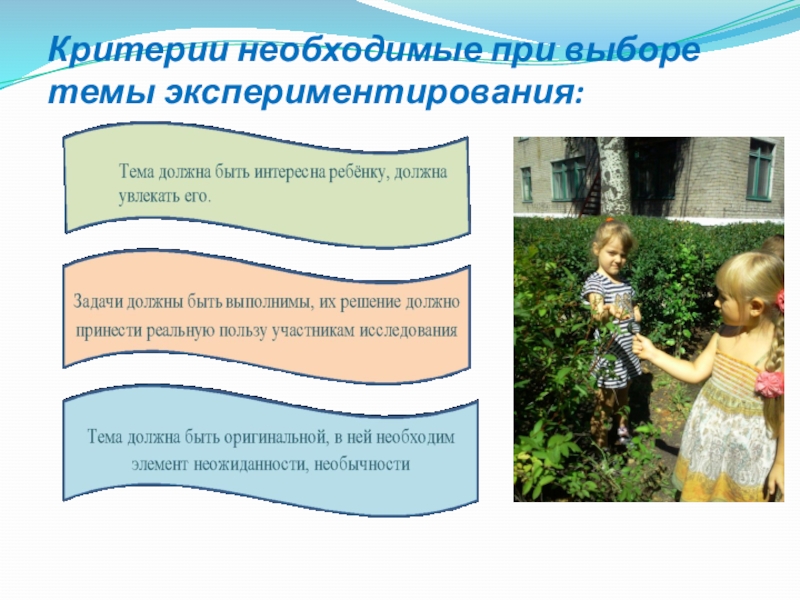 В процессе экспериментирования дошкольник получает возможность удовлетворить присущую ему любознательность, почувствовать себя учёным, исследователем, первооткрывателем.