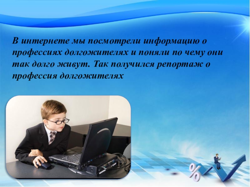 Слайд 7В интернете мы посмотрели информацию о профессиях долгожителях и поняли по