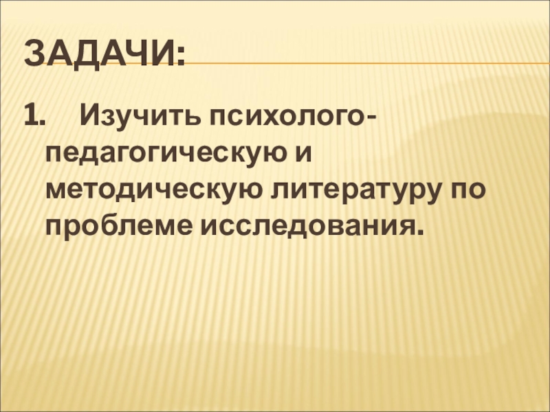 ЗАДАЧИ:1.     Изучить психолого-педагогическую и методическую литературу по проблеме исследования.