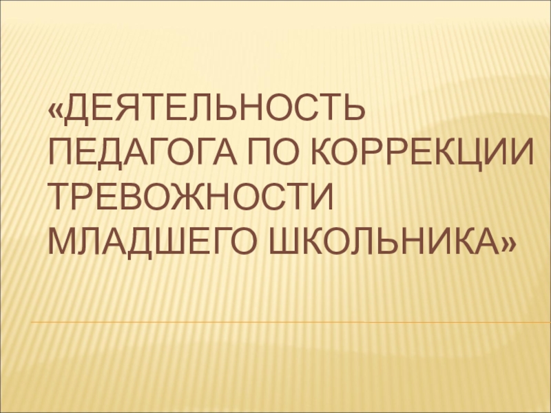 Слайд 1«ДЕЯТЕЛЬНОСТЬ ПЕДАГОГА ПО КОРРЕКЦИИ ТРЕВОЖНОСТИ МЛАДШЕГО ШКОЛЬНИКА»
