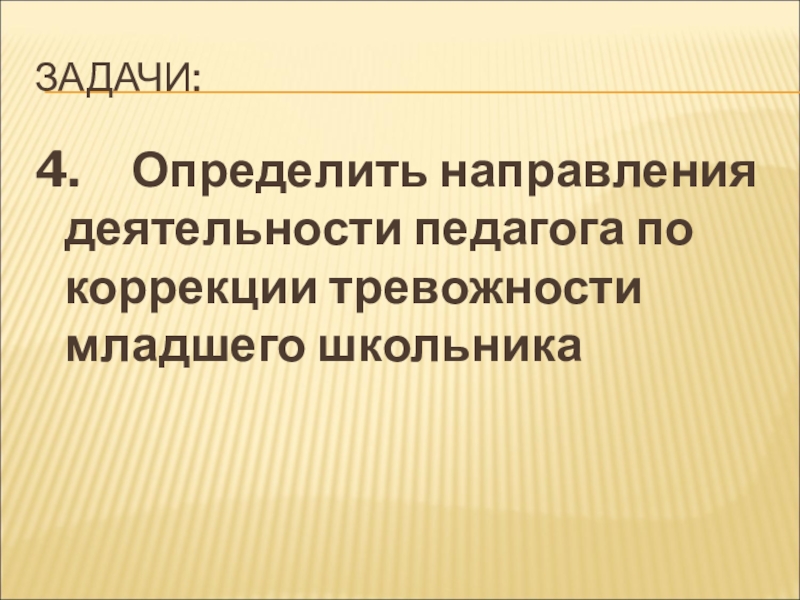 ЗАДАЧИ:4.     Определить направления деятельности педагога по коррекции тревожности младшего школьника