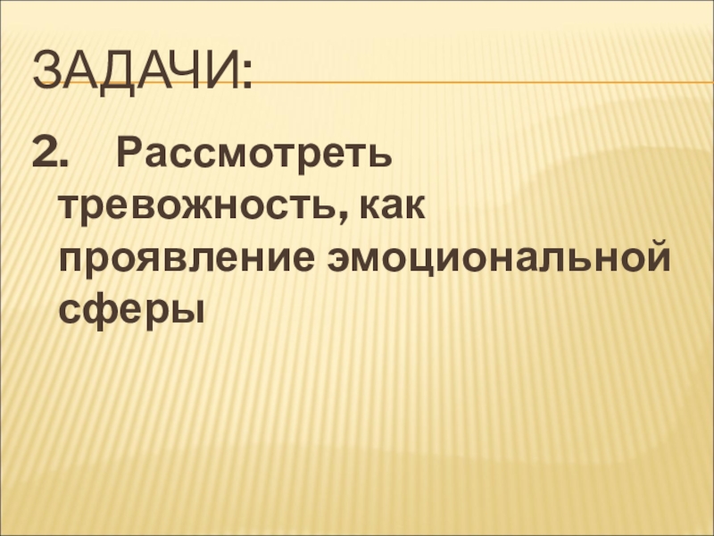 ЗАДАЧИ:2.     Рассмотреть тревожность, как проявление эмоциональной сферы