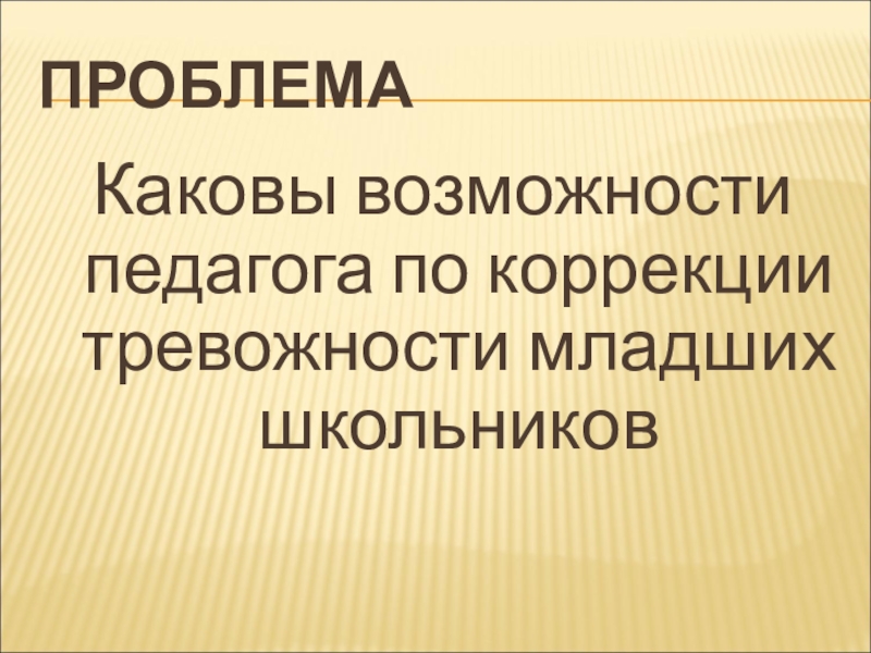 ПРОБЛЕМАКаковы возможности педагога по коррекции тревожности младших школьников