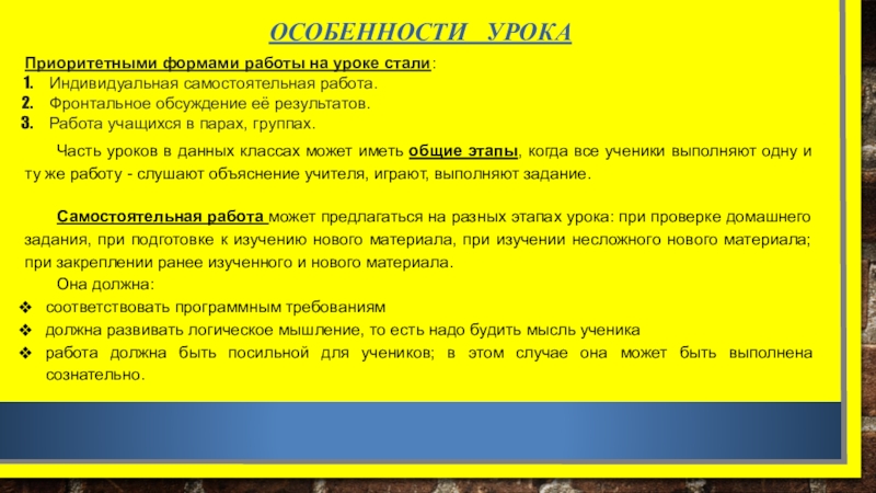 ОСОБЕННОСТИ УРОКА