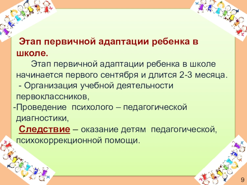 адаптации ребенка в школе начинается первого сентября и длится 2-3 месяца.