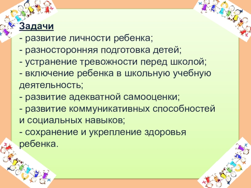 - Подготовить детей, посещающих и не посещающих детский сад, к