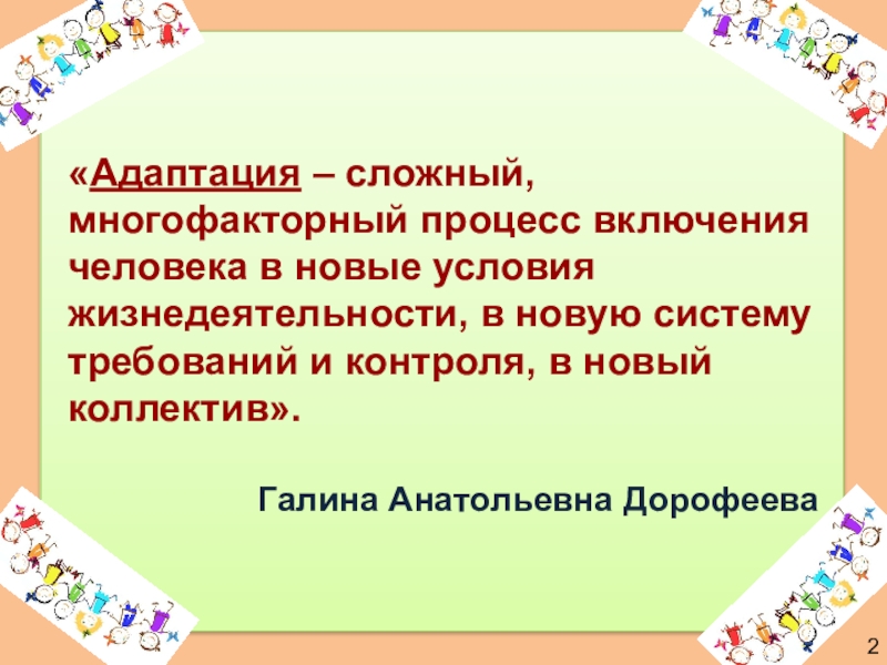 «Адаптация – сложный, многофакторный процесс включения человека в новые условия жизнедеятельности,