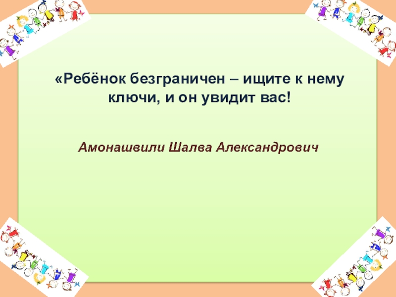 Слайд 25«Ребёнок безграничен – ищите к нему ключи, и он увидит вас!