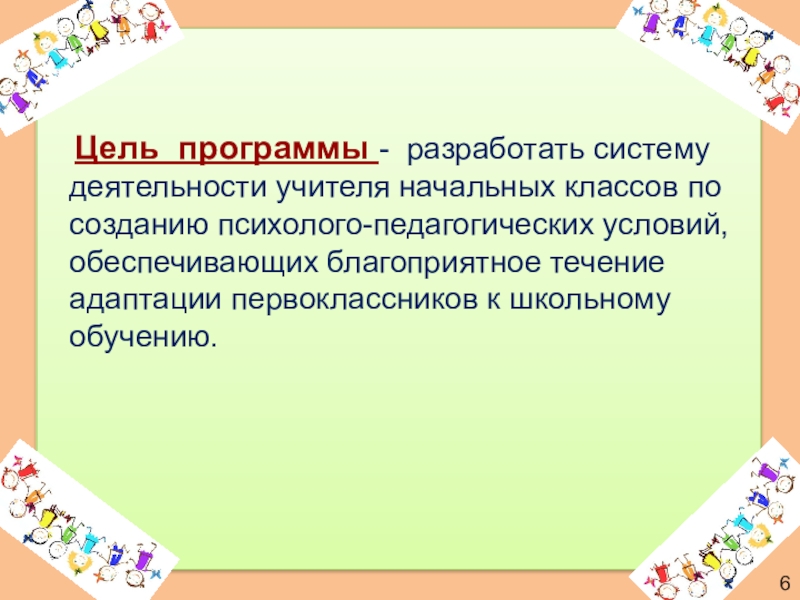 созданию психолого-педагогических условий, обеспечивающих благоприятное течение адаптации первоклассников к школьному обучению.