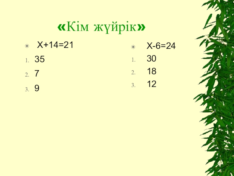 «Кім жүйрік»Х-6=24301812  Х+14=21 35 7 9