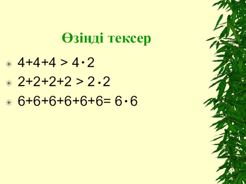Өзіңді тексер4+4+4 > 4 22+2+2+2 > 2 26+6+6+6+6+6= 6 6