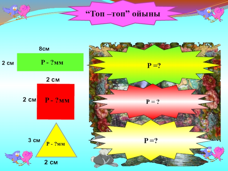 “Топ –топ” ойыны8см2 см3 см2 см2 см2 смP - ?ммP - ?ммP - ?ммP =?Р = ?P
