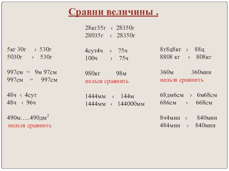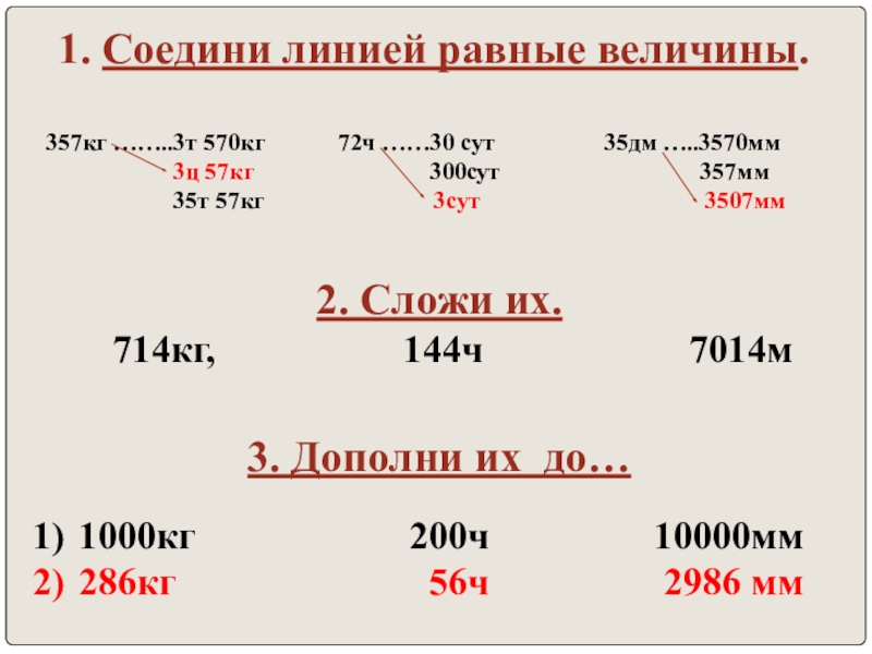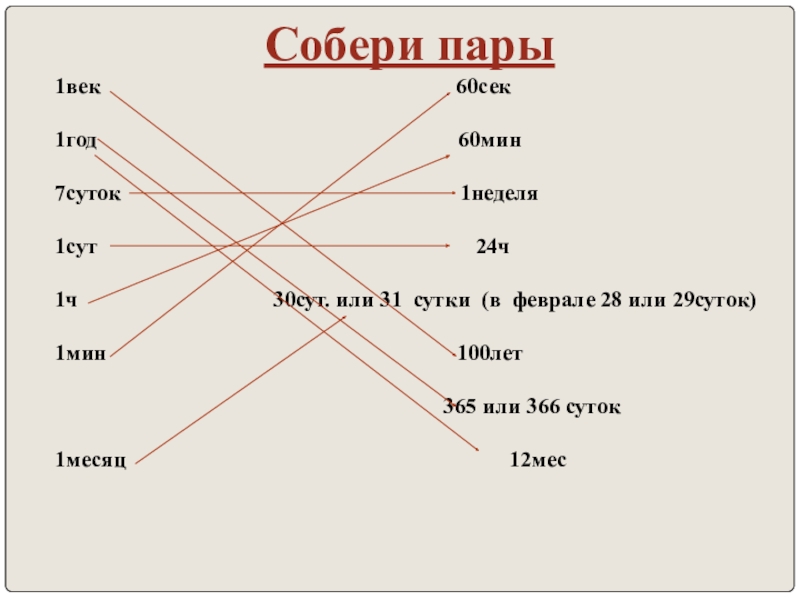 год – 365сут; 1ч – 60 сек; 1 век – 365мес.