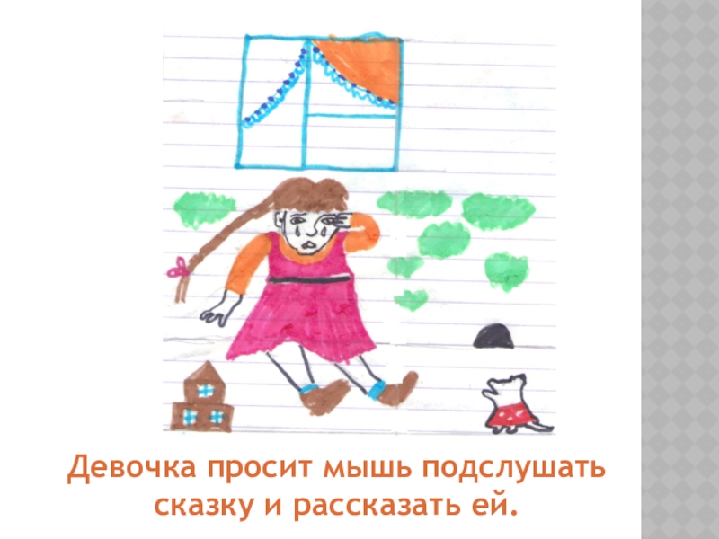 Слайд 4Девочка просит мышь подслушать сказку и рассказать ей.