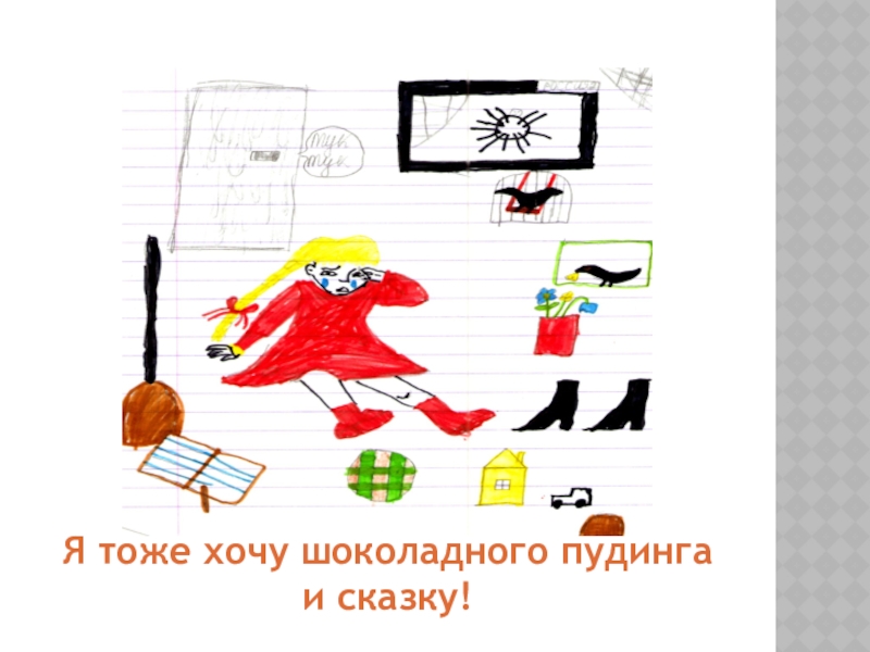 Слайд 10Я тоже хочу шоколадного пудинга и сказку!