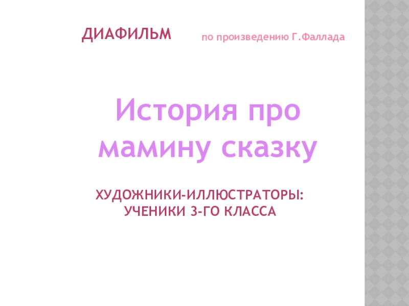 ДиафильмИстория про мамину сказкуХудожники-иллюстраторы:Ученики 3-го классапо произведению Г.Фаллада