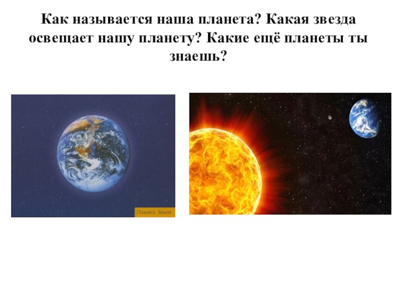 Слайд 12Как называется наша планета? Какая звезда освещает нашу планету? Какие ещё
