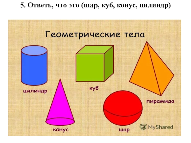 5. Ответь, что это (шар, куб, конус, цилиндр)