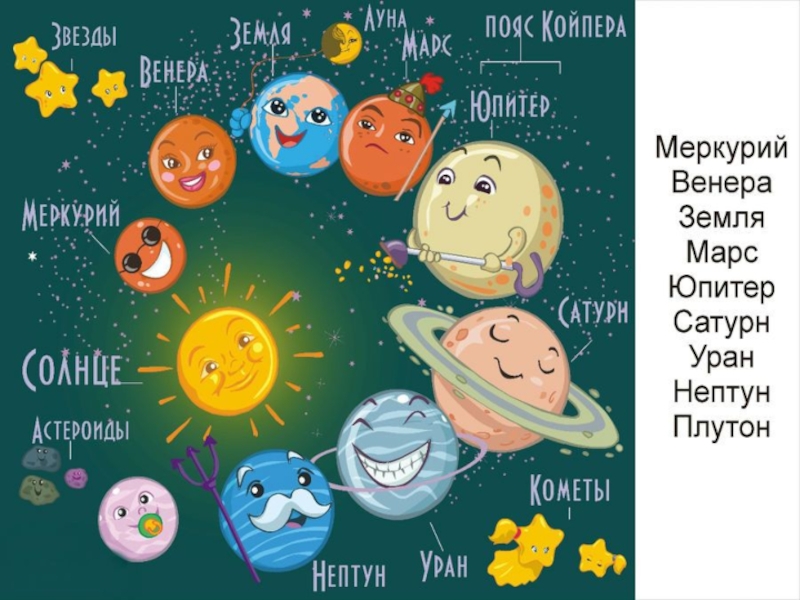 Как называется наша планета? Какая звезда освещает нашу планету? Какие ещё планеты ты знаешь?