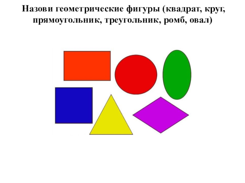 Назови геометрические фигуры (квадрат, круг, прямоугольник, треугольник, ромб, овал)