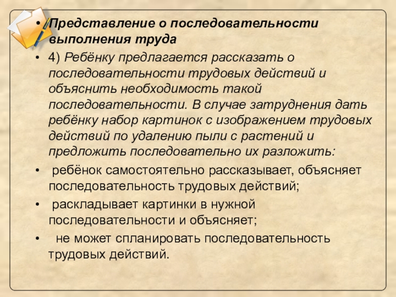 4) Ребёнку предлагается рассказать о последовательности трудовых