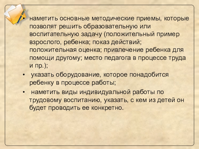 Слайд 18наметить основные методические приемы, которые позволят решить образовательную или воспитательную задачу