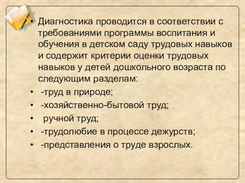 Слайд 3Диагностика проводится в соответствии с требованиями программы воспитания и обучения в