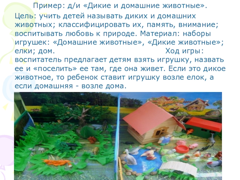 Слайд 11Пример: д/и «Дикие и домашние животные».