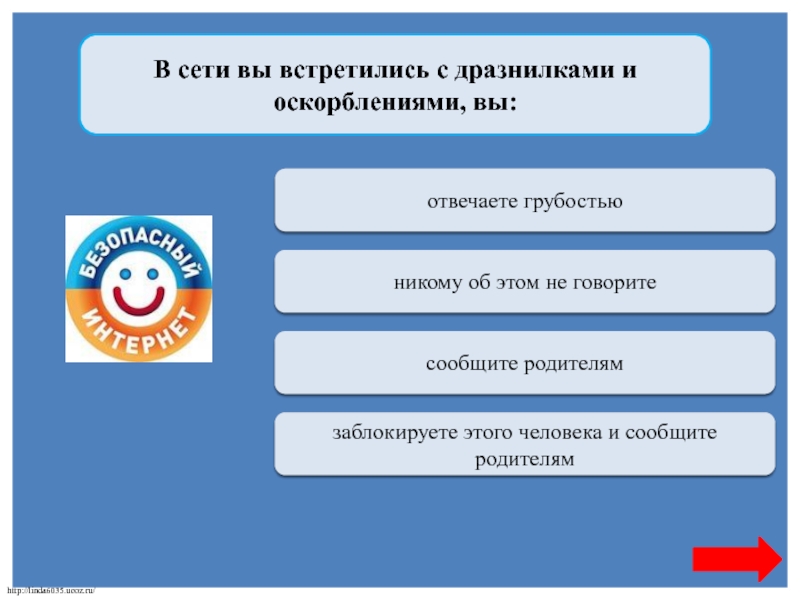 заблокируете этого человека и сообщите родителям