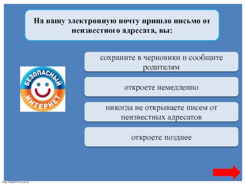 никогда не открываете писем от неизвестных адресатов