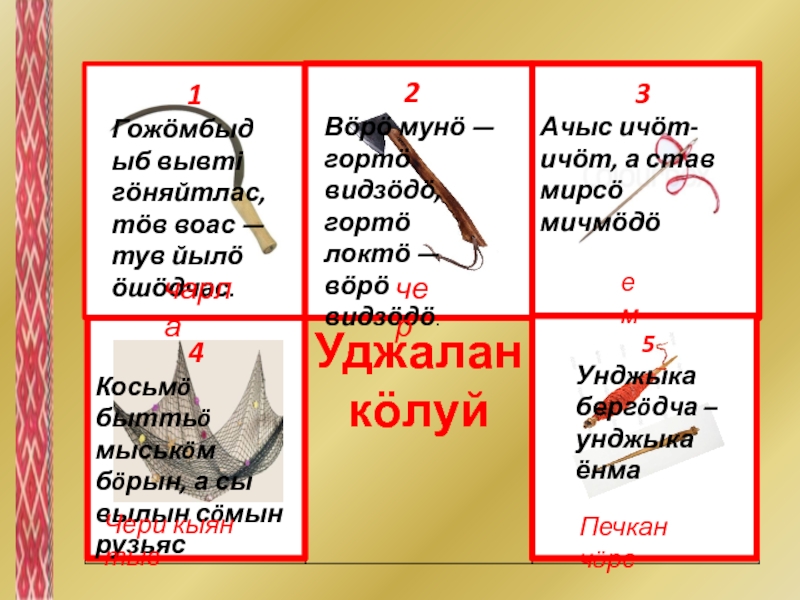 Абу пороз, а лукасьö. Оз сёй, а сеян тшапкö,