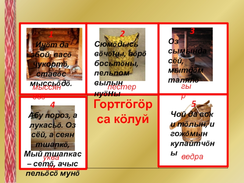 Косьмö быттьö мыськöм бöрын, а сы вылын сöмын рузьяс