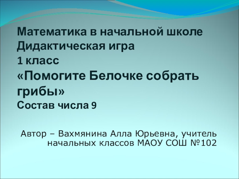 Автор – Вахмянина Алла Юрьевна, учитель начальных классов МАОУ СОШ №102