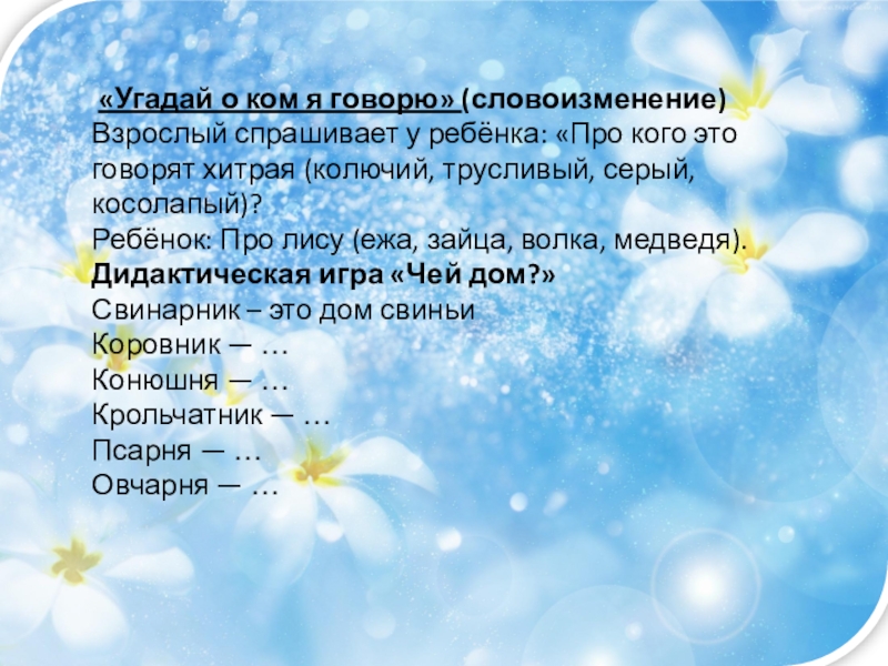 Слайд 16 «Угадай о ком я говорю» (словоизменение)