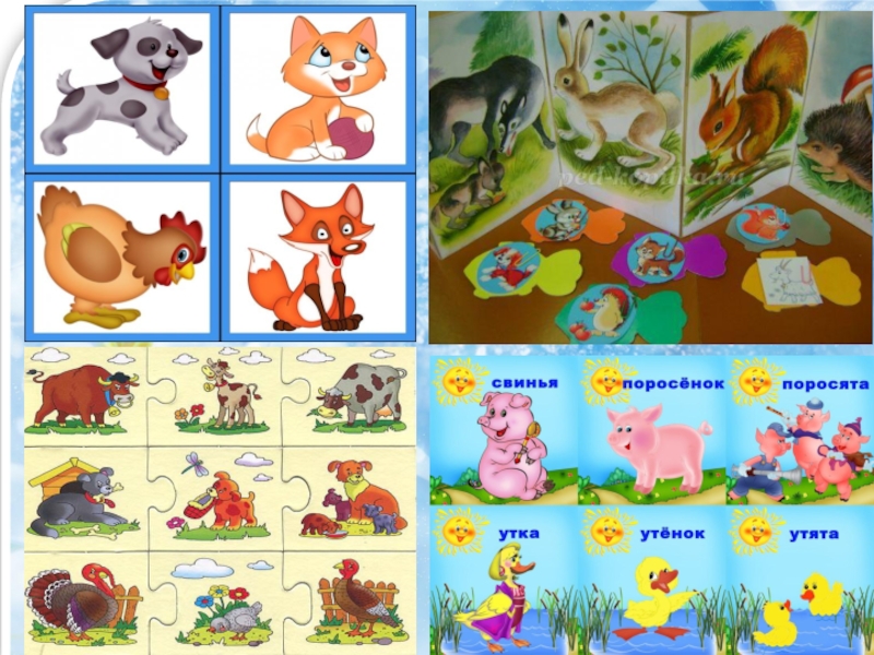 игры используются картинки с изображением животных и их детенышей.