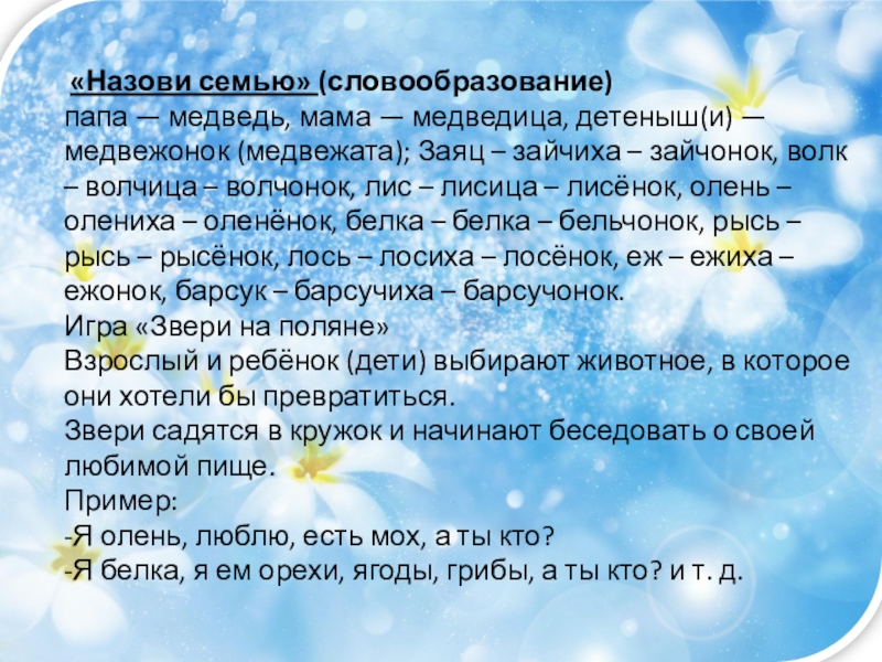 Слайд 18 «Назови семью» (словообразование)
