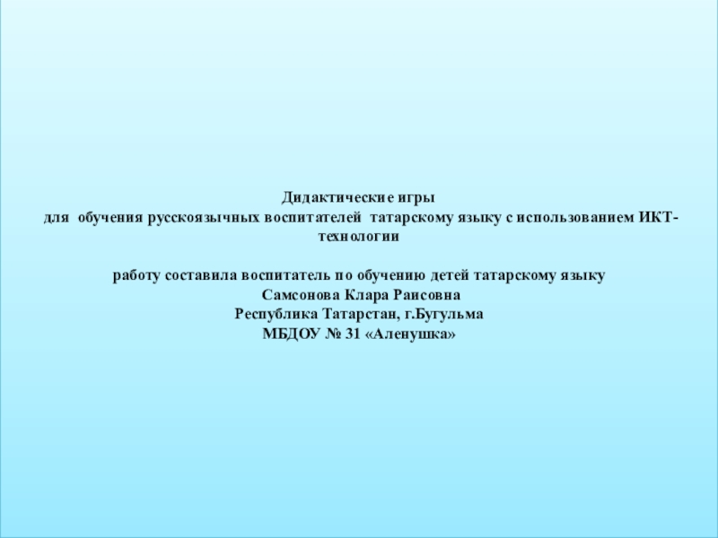 работу составила воспитатель по обучению детей татарскому языку