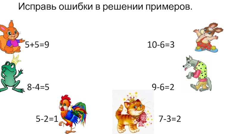 5+5=9 10-6=3 8-4=5 9-6=2 5-2=1 7-3=2